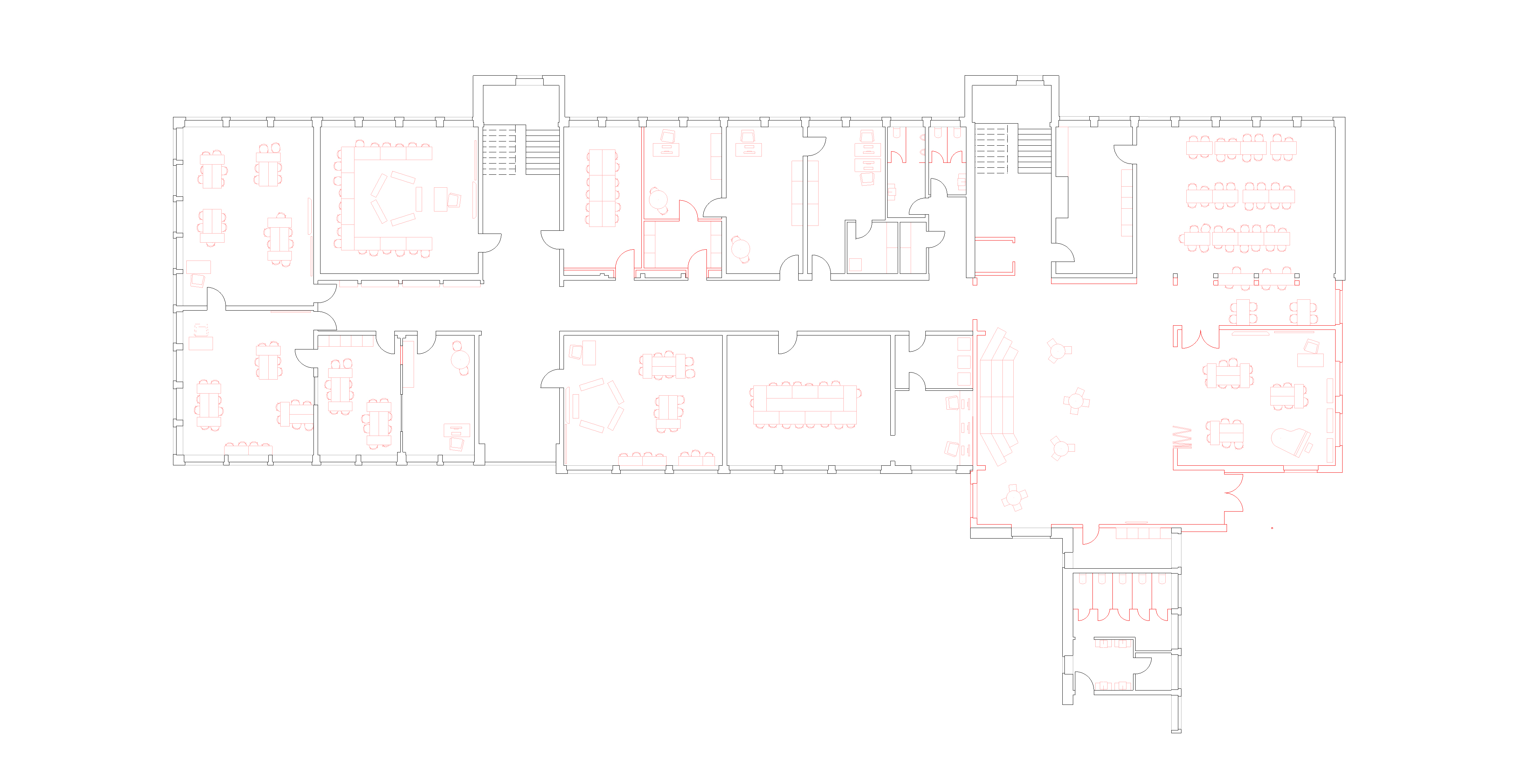Im Zuge dessen entwickelten wir eine damals essenzielle Covid-konforme Teilbarkeit der Flächen und übernahmen zudem die Planung der Möbel und Grafiken.