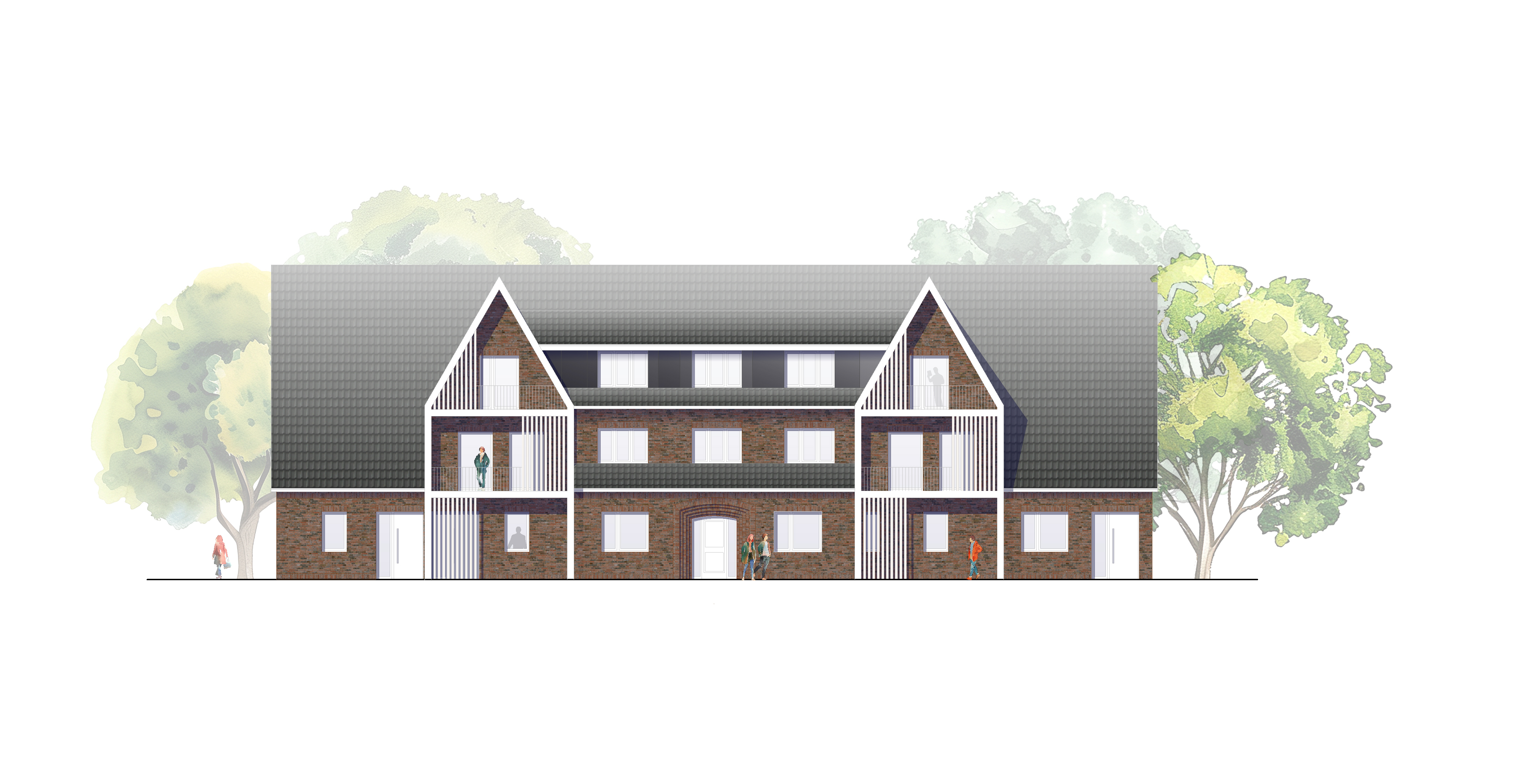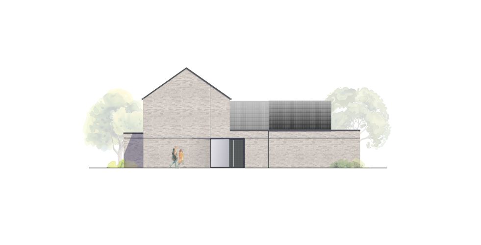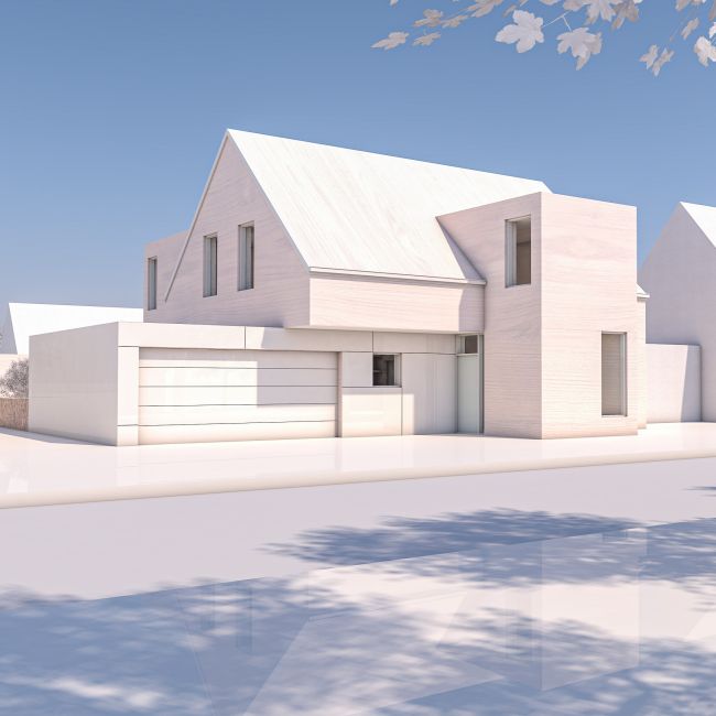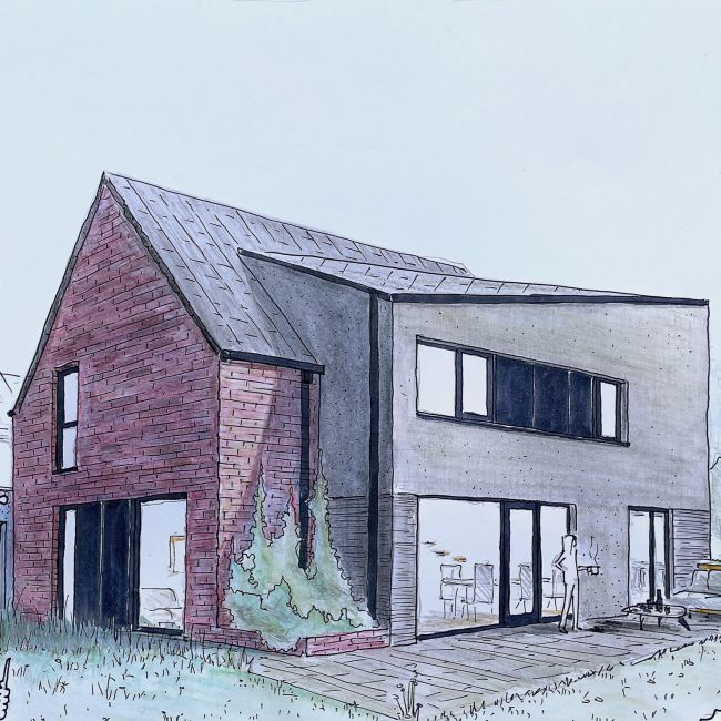 UPDATE: Der Baustart ist erfolgt. Entgegen der ursprünglichen Planung wird die Fassade mit einem Besenstrich-Putz versehen.