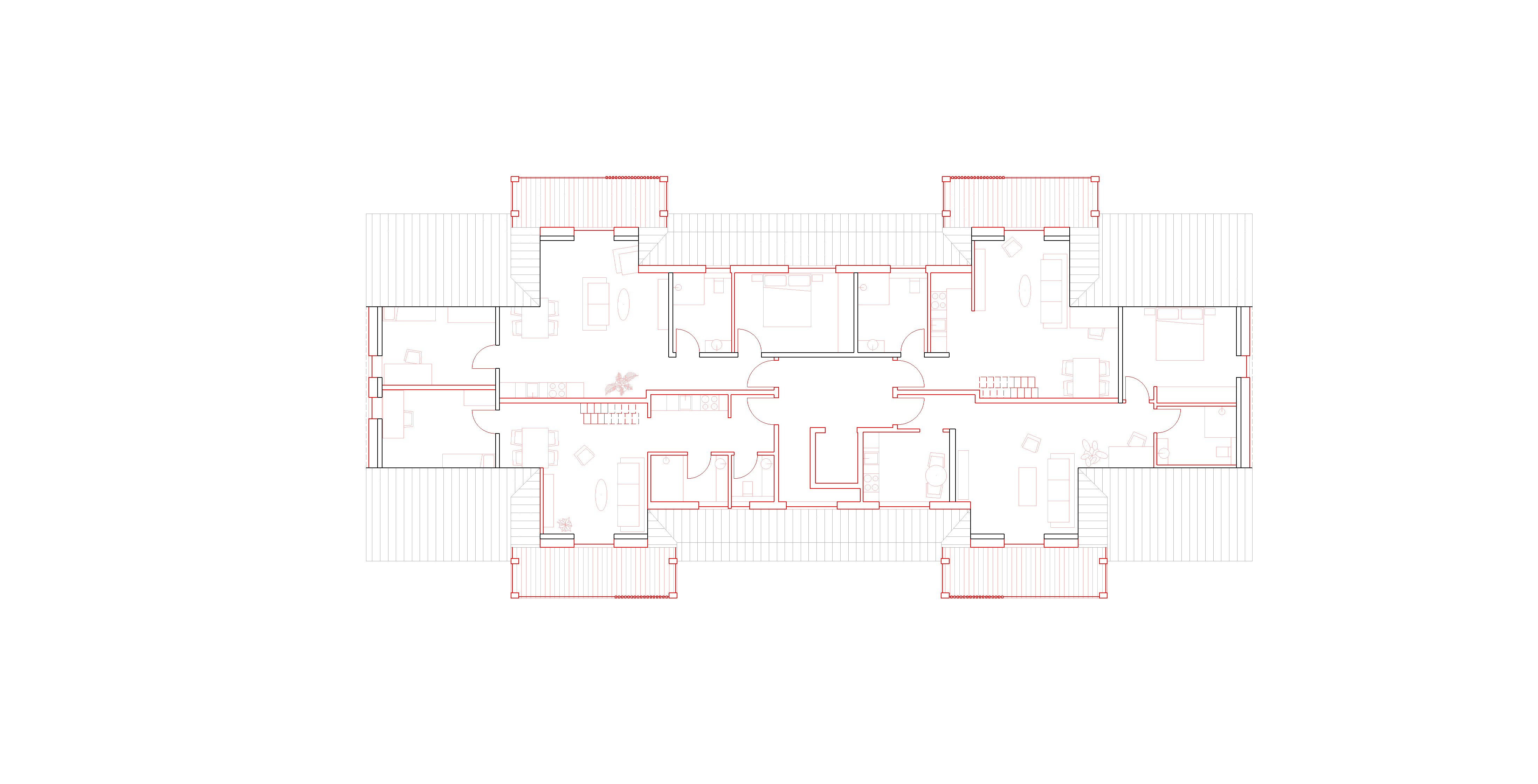 Es entstehen 2 ca 114 m² große Einheiten, jeweils mit offener Wohnküche und drei Schlafzimmern.