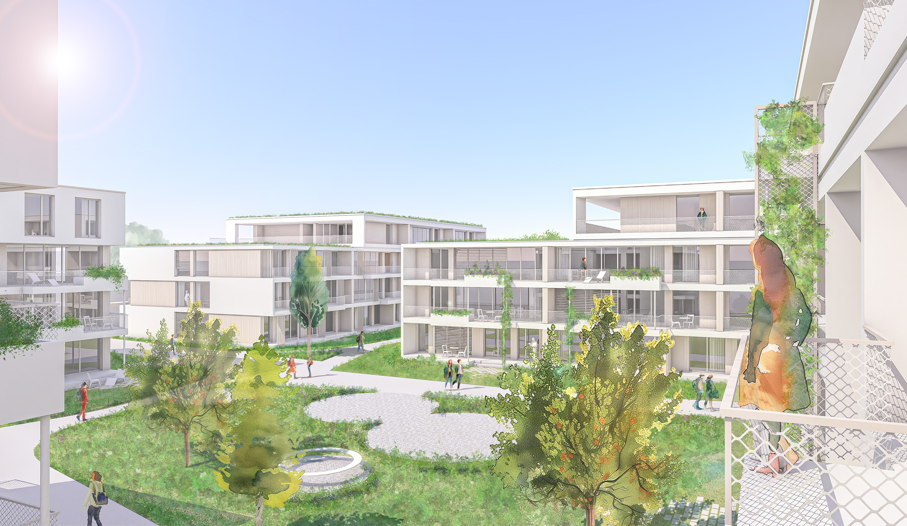 Vielseitige Wohnmöglichkeiten bringen mehr soziale Gerechtigkeit: Eine Kombination von gehobenem Wohnungsbau, individuellem Wohnen und einfachem Geschosswohnungsbau bietet Menschen mit unterschiedlichen Wünschen und Möglichkeiten am selben Ort einen Platz zum Leben. Aus sozialer Durchmischung ergibt sich ein integratives Miteinander und fördert ein pluralistisches Weltbild.