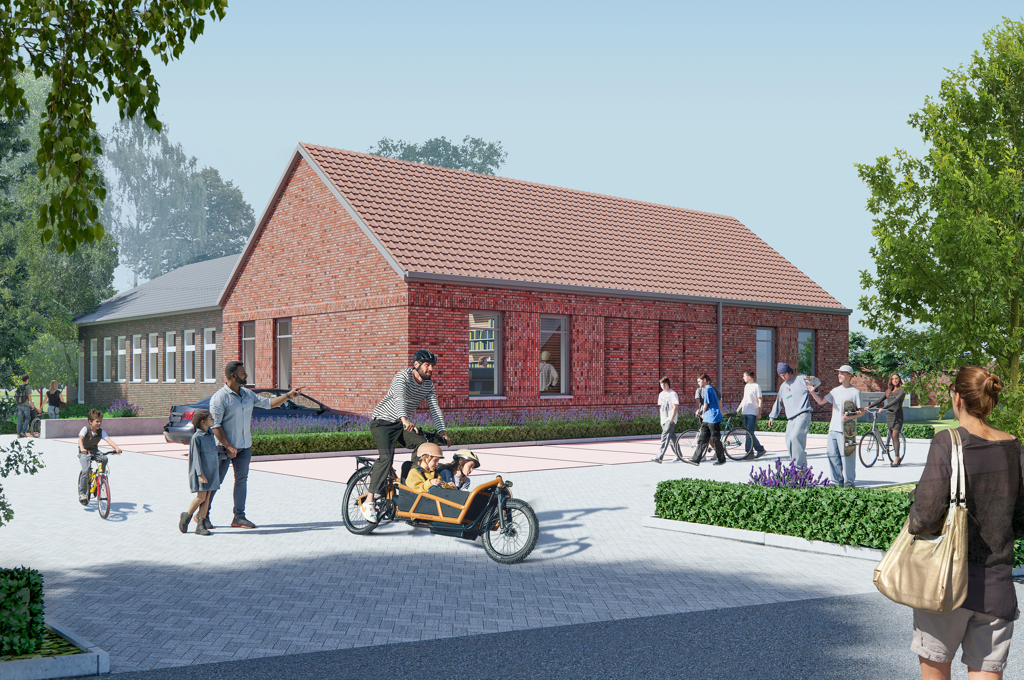 Zudem bietet das Quartier Gemeinschaftsflächen sowie Gemeinschaftsräume wie ein Café, das sich in den Ort öffnet, um auch Bürger von außen einzuladen.